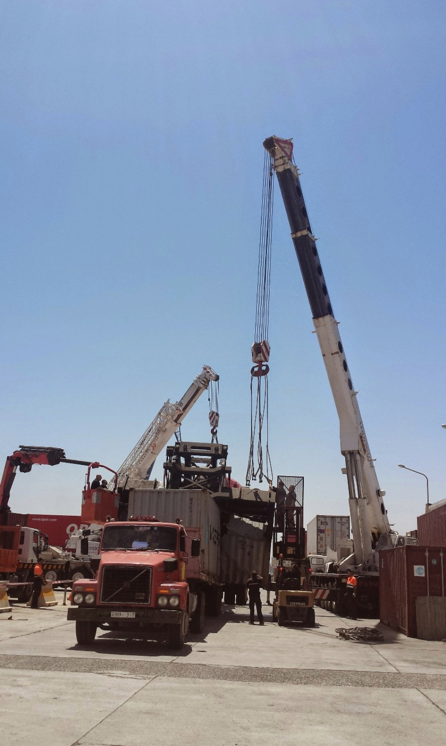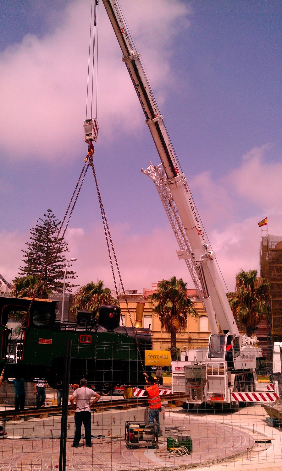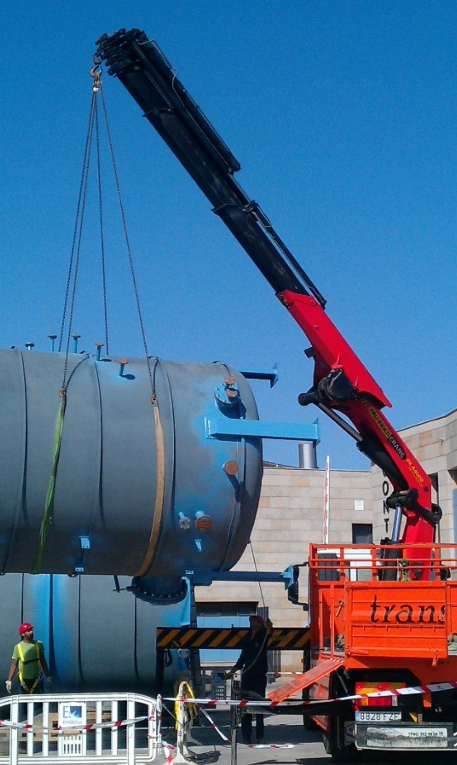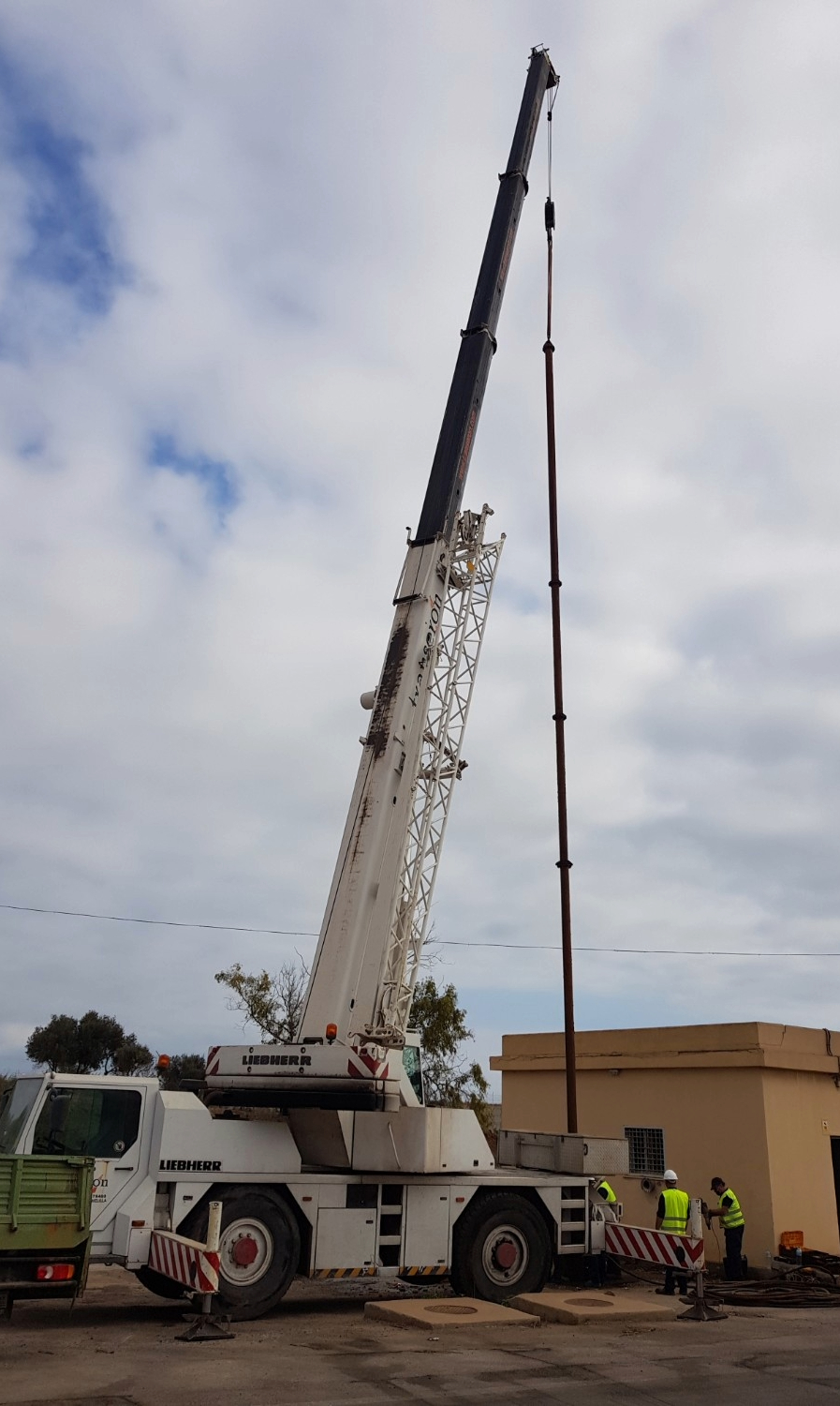 Montaje de grúa automontante en el patio de la iglesia de Melilla La Vieja