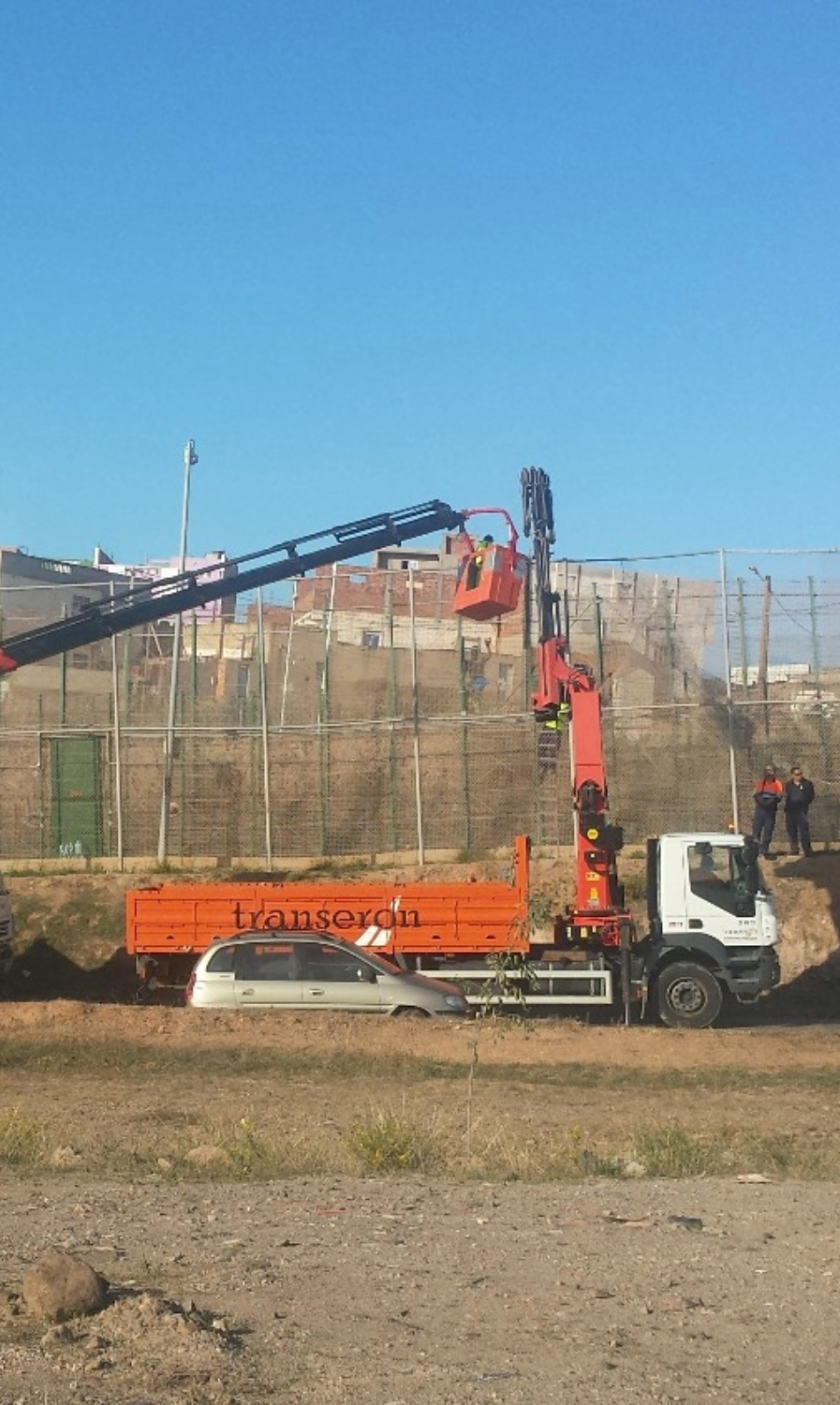Desmontaje de la última grúa de la Urbanización Magna Melilla